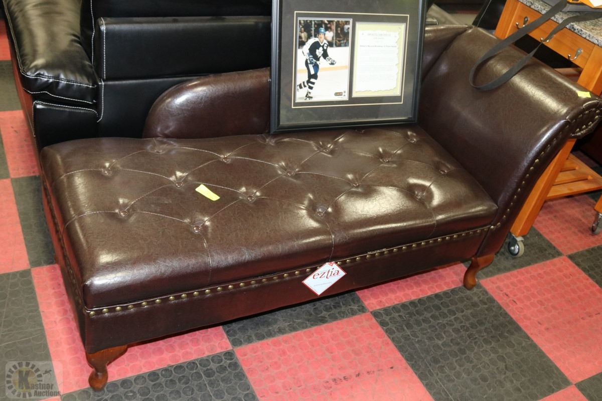 NEW BROWN LEATHERETTE STORAGE CHAISE LOUNGE CHAIR