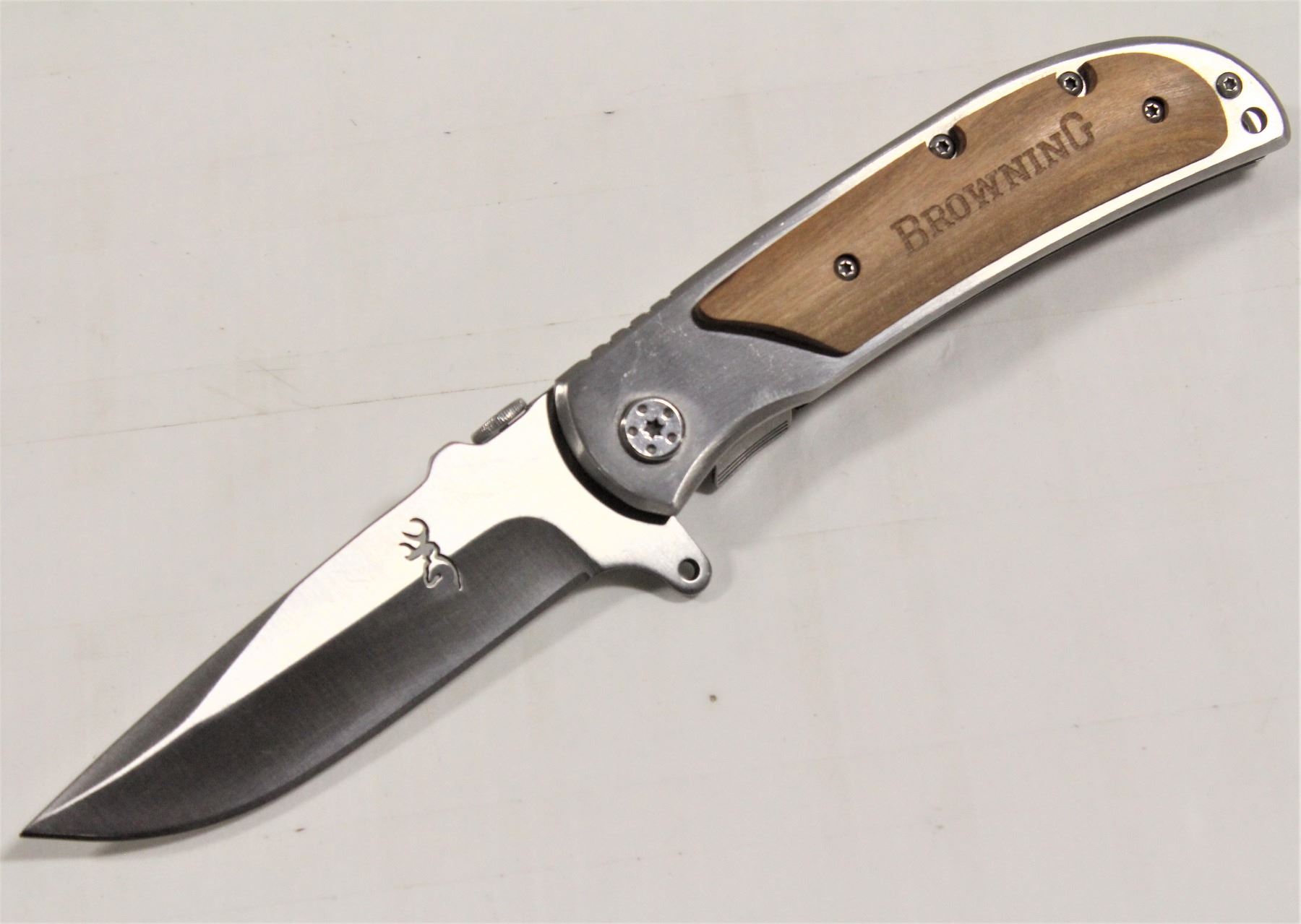 3.5" BLADE, RIVETED REINFORCED STEEL HANDLE W/ WOODEN PLATE, QUICK FLIP TAB W/ LOOPHOLE, EASY PRESS SAFETY RELEASE LOCK. HEAVY. STAINLESS STEEL FINISH.