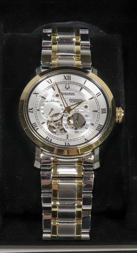 21 JEWELS. AUTHENTIC. SKELETON BACK & PART FRONT. 43 MM CASE. ORIGINAL BOX & MANUAL. JEWELLERY