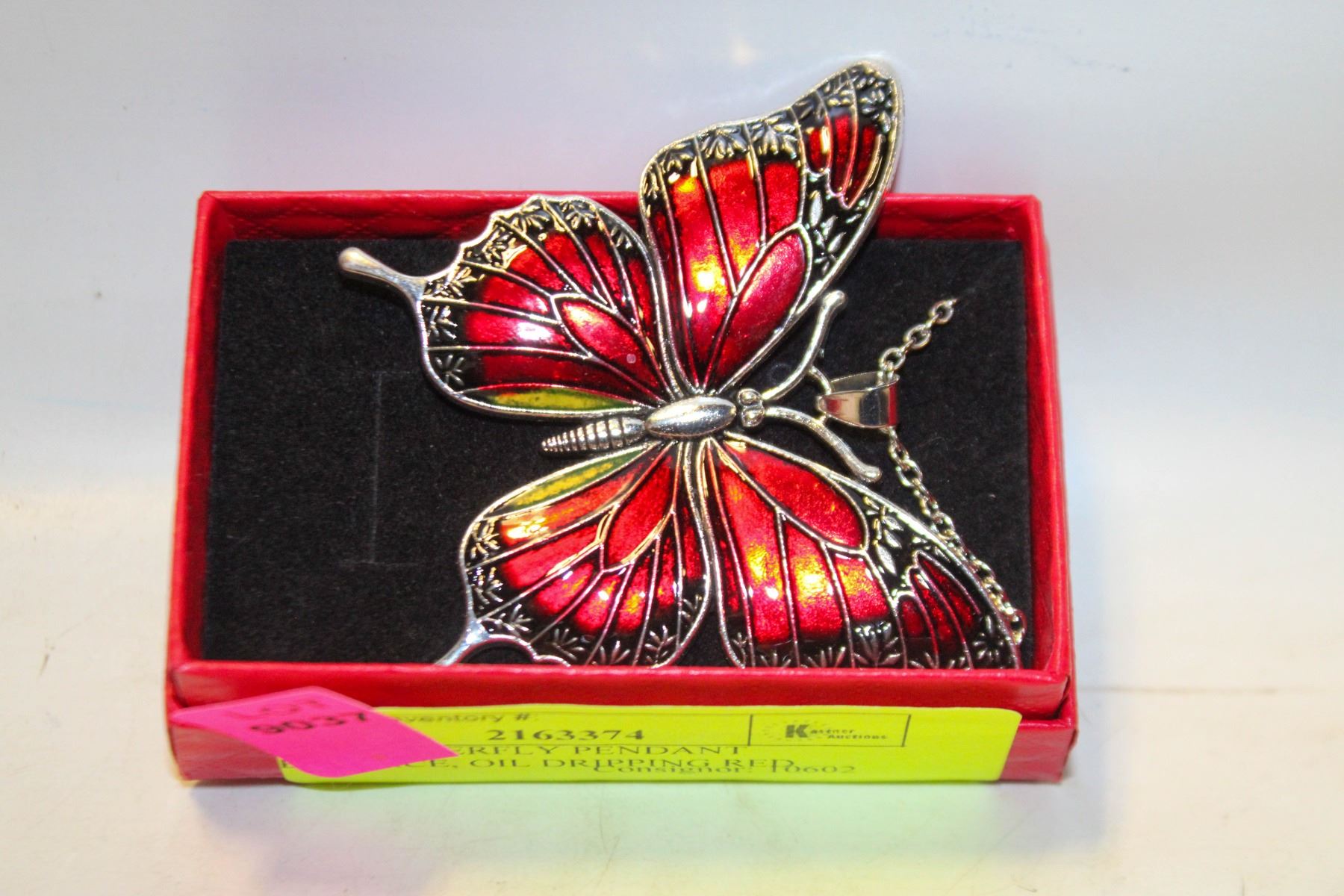 NEW BUTTERFLY PENDANT NECKLACE, OIL DRIPPING RED