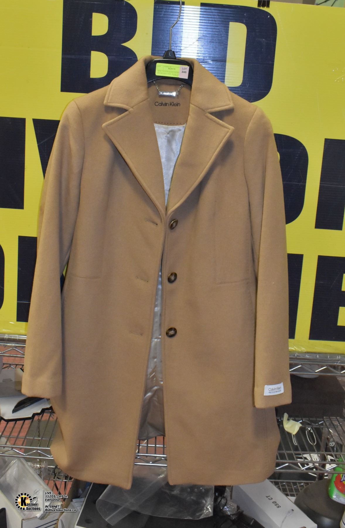 NEW CALVIN KLEIN WOMENS OVERCOAT, TAN, WOOL BLEND