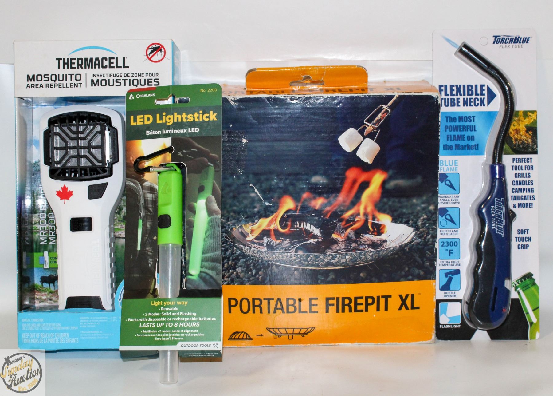 FLEX TUBE, NEW IN BOX PORTABLE FIREPIT XL, THERMACELL MOSQUITO AREA REPELLENT 15 FT ZONE **ALL ITEMS MUST BE REMOVED BY 5PM SATURDAY, MAY 17TH 2025. ALL REMAINING ITEMS WILL BE SUBJECT TO A $6.00 PER DAY STORAGE CHARGE. ANY ITEMS REMAINING AFTER MONDAY, JUNE 2ND 2025 WILL BE CONSIDERED FORFEITED. NO REFUNDS WILL BE ISSUED FOR FORFEITED ITEMS. TO SCHEDULE A PICK UP APPOINTMENT CLICK HERE
