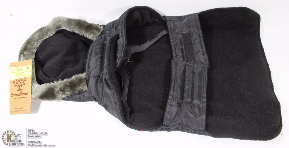 NEW CANADIANA BLACK DOG COAT WITH HOOD SIZE MEDIUM