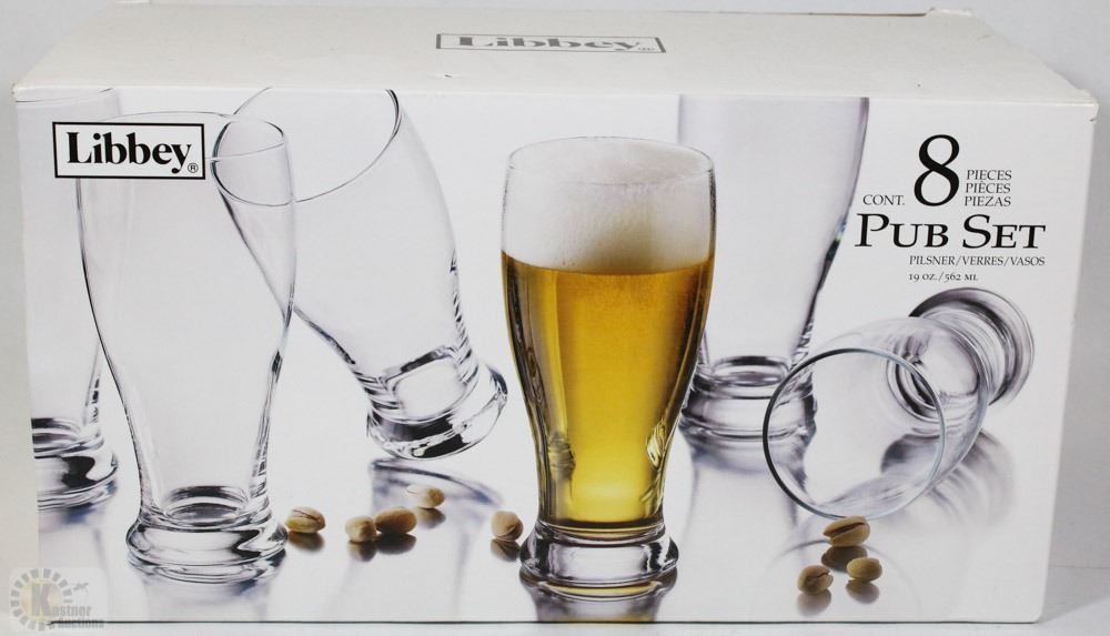 NEW CASE OF 8 LIBBY PUB GLASS SET