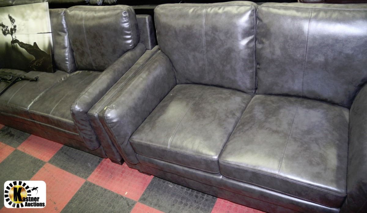 NEW CHARCOAL LEATHERETTE SOFA AND LOVESEAT