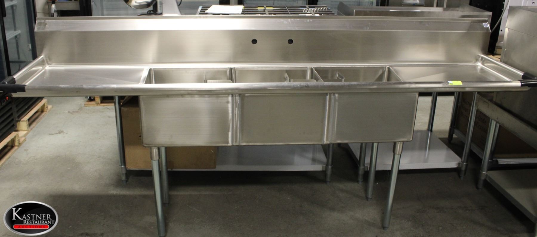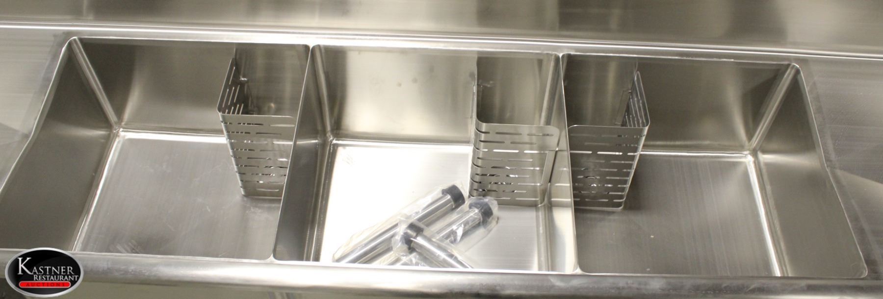 DRAIN BOARD, WELLS MEASURE 18" X 18" X 11" DRAIN BOARDS MEASURE 25" LEFT 25" RIGHT TOTAL UNIT MEASURES 104" X 24" X 36"** THIS LOT IS NOT LOCATED AT THE ONSITE LOCATION, IT IS LOCATED AT THE KASTNER AUCTIONS WAREHOUSE AT 11205 149 STREET EDMONTON ALBERTA **