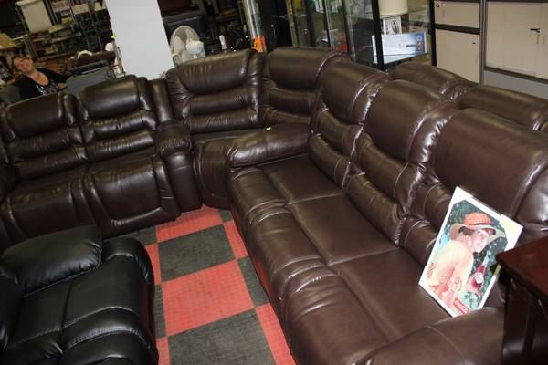 NEW CHOCOLATE BROWN LEATHER RECLINING SECTIONAL