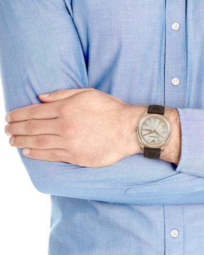 SUNRAY DIAL 43MM DAY/DATE BROWN LEATHER STRAP WATCH. JEWELLERY.
