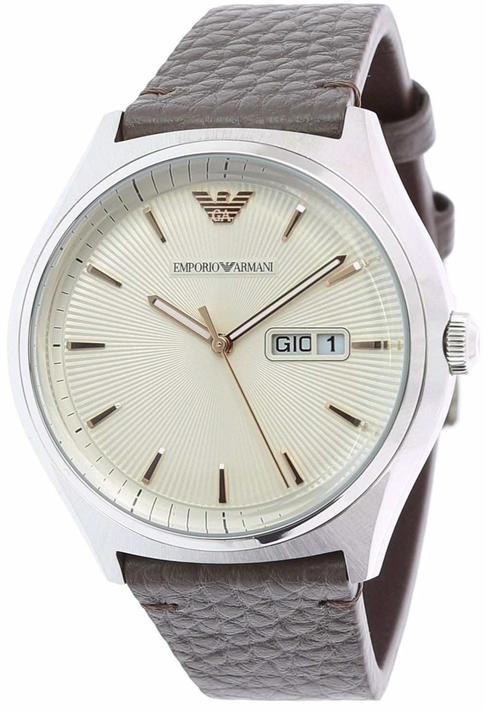 43MM DAY/DATE BROWN LEATHER STRAP WATCH. JEWELLERY.
