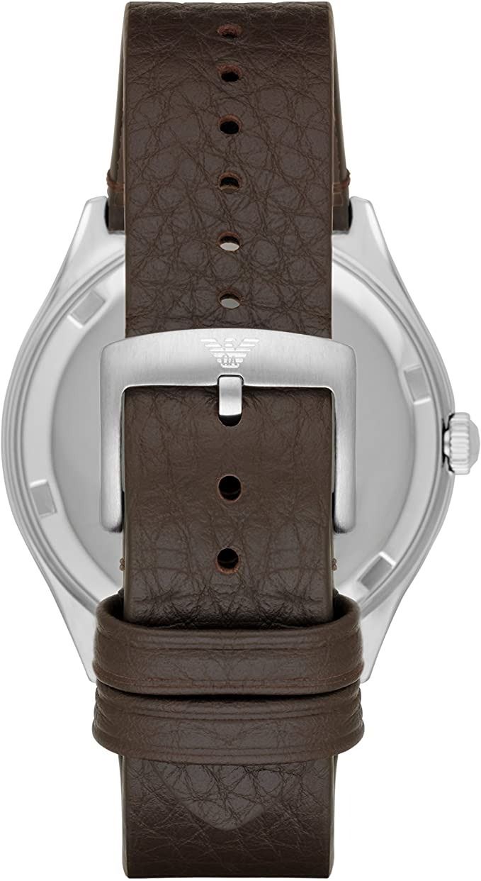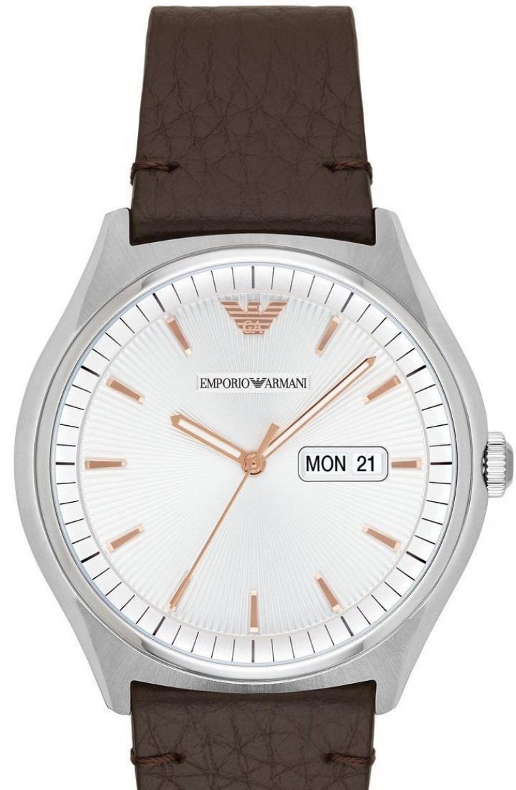 43MM DAY/DATE BROWN LEATHER STRAP WATCH. JEWELLERY.