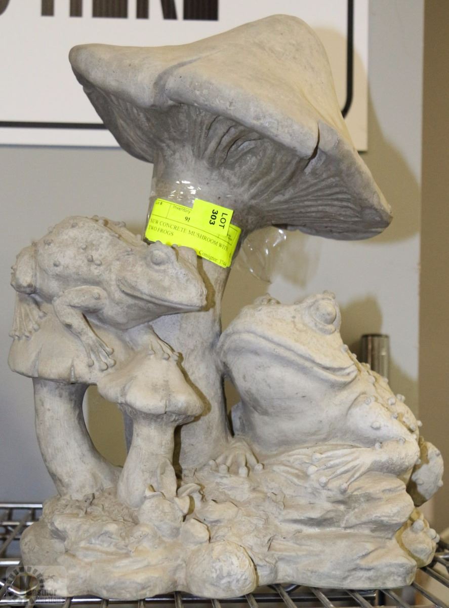 NEW CONCRETE MUSHROOM WITH TWO FROGS