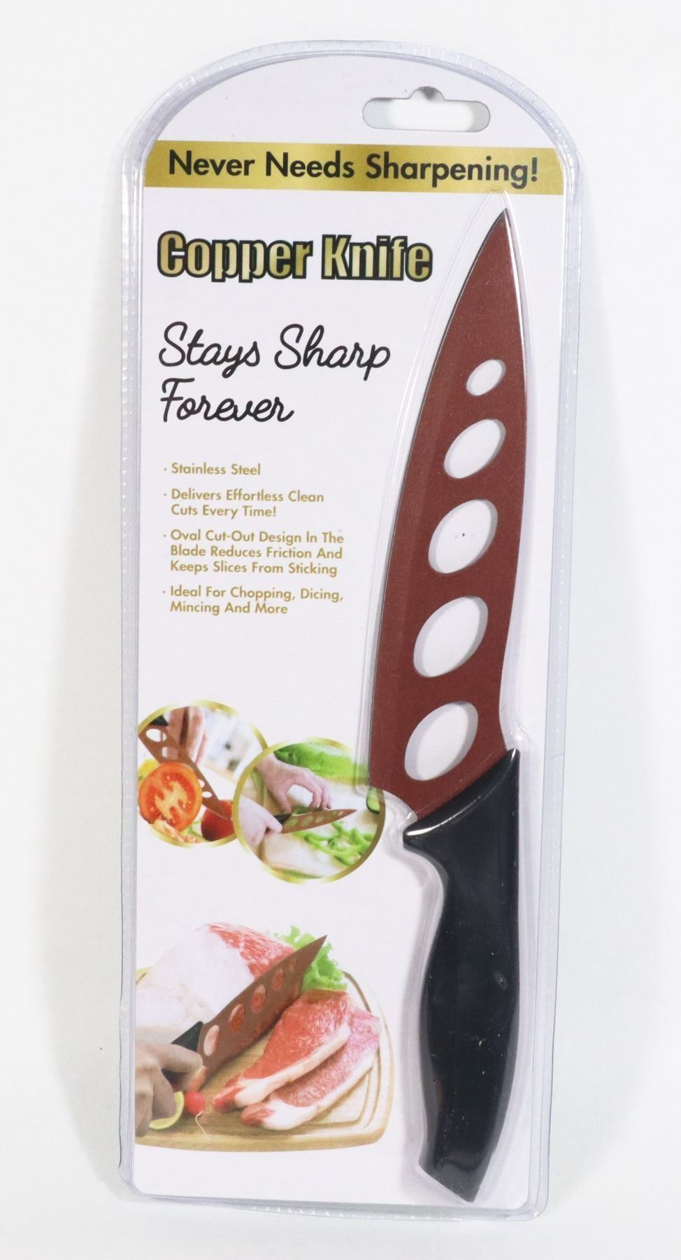 OVAL CUT OUT DESIGN IN THE BLADE REDUCES FRICTION AND KEEPS SLICES FORM STICKING