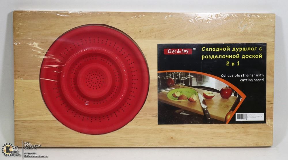 NEW CUTTING BOARD W/ BUILT IN COLLAPSIBLE STAINER