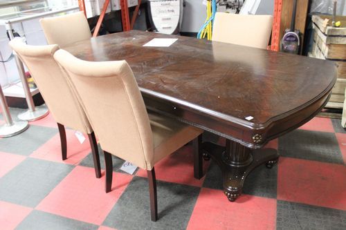 NEW DBL PEDESTAL TABLE W 4 FABRIC SIDECHAIRS