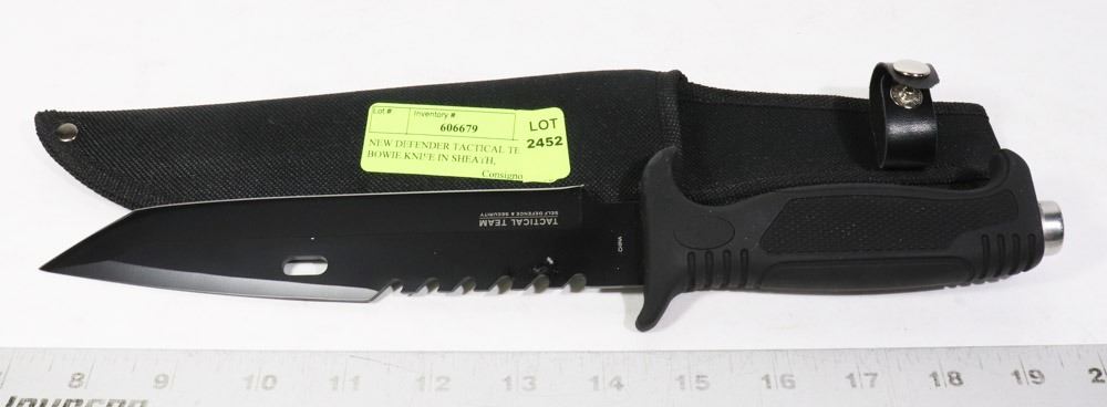 NEW DEFENDER TACTICAL TEAM BOWIE KNIFE IN SHEATH,