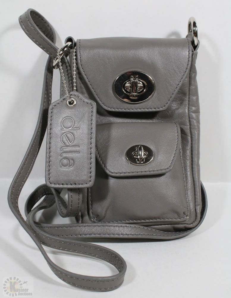 NEW DELLA LEATHER PEGGY PASSPORT PURSE GREY COLOR