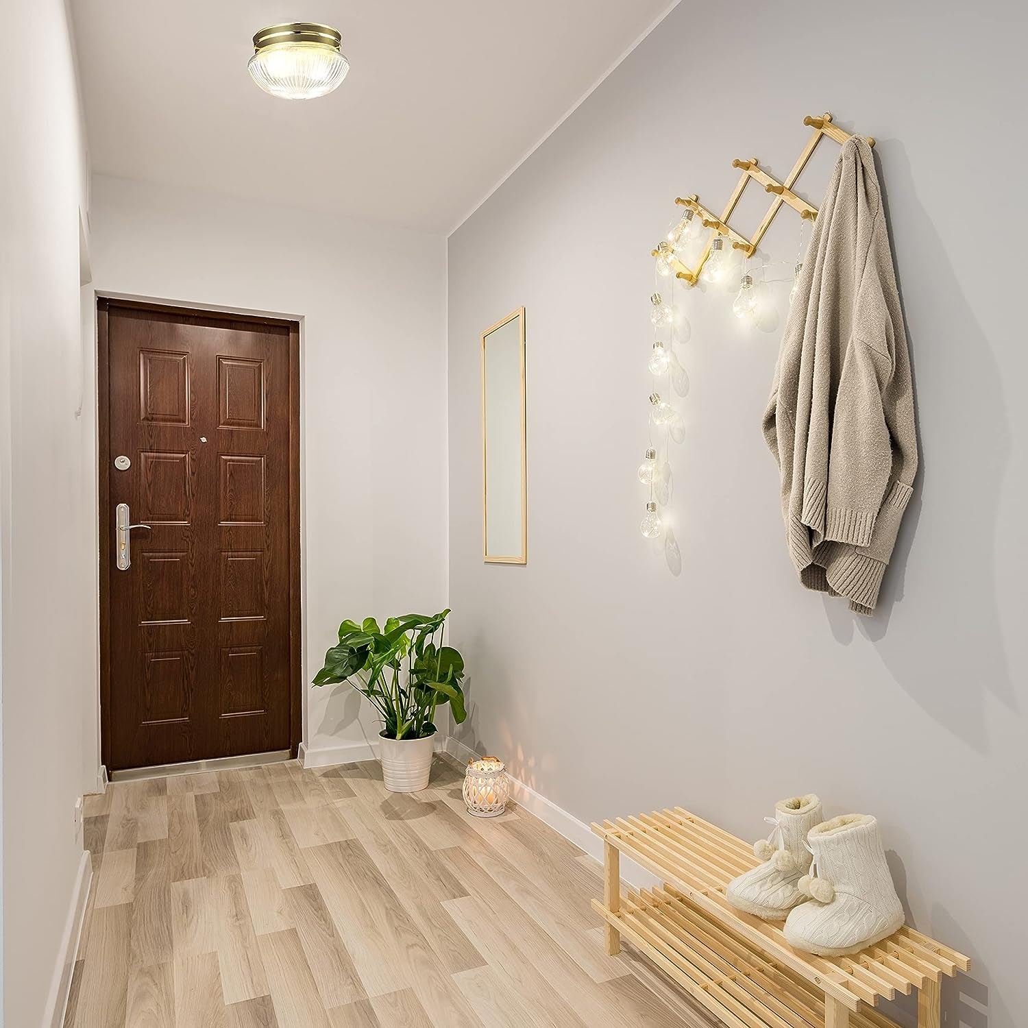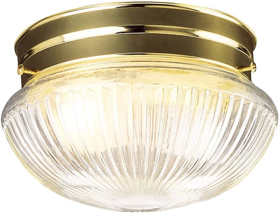 CEILING LIGHT, POLISHED BRASS FINISH WITH CLEAR RIBBED GLASS, BULBS SOLD SEPARATELY, AMZ SES