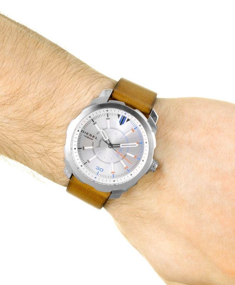 NEW DIESEL 46MM SILVER DIAL LEATHER STRAP MSRP$220