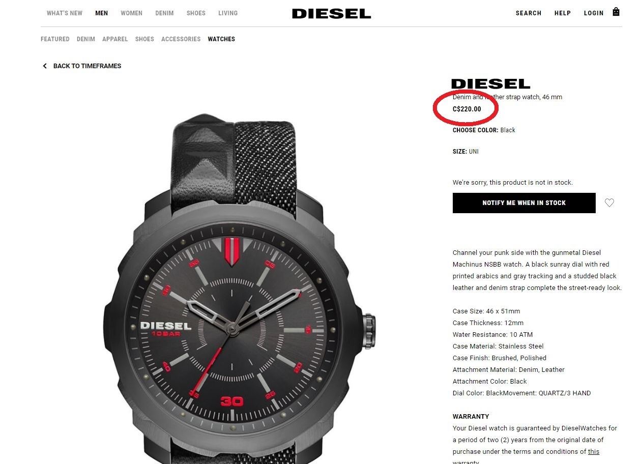 DENIM/LEATHER STRAP WATCH. JEWELLERY