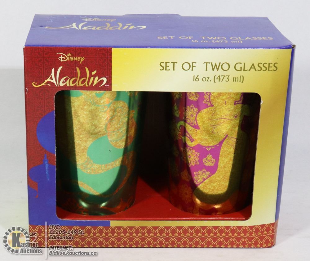 NEW DISNEY ALADDIN TWO 16-OZ GLASS SET