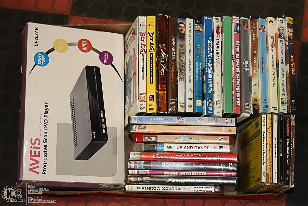 NEW DVD PLAYER WITH REMOTE, DVDS,PS3 & CDS
