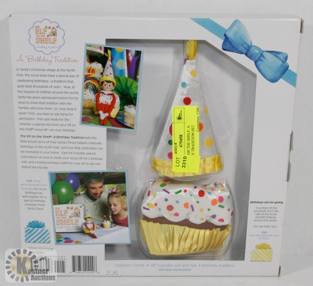 CHILDRENS'S BOOK, ELF CUPCAKE SUIT AND HAT, BIRTHDAY TRADITION.
