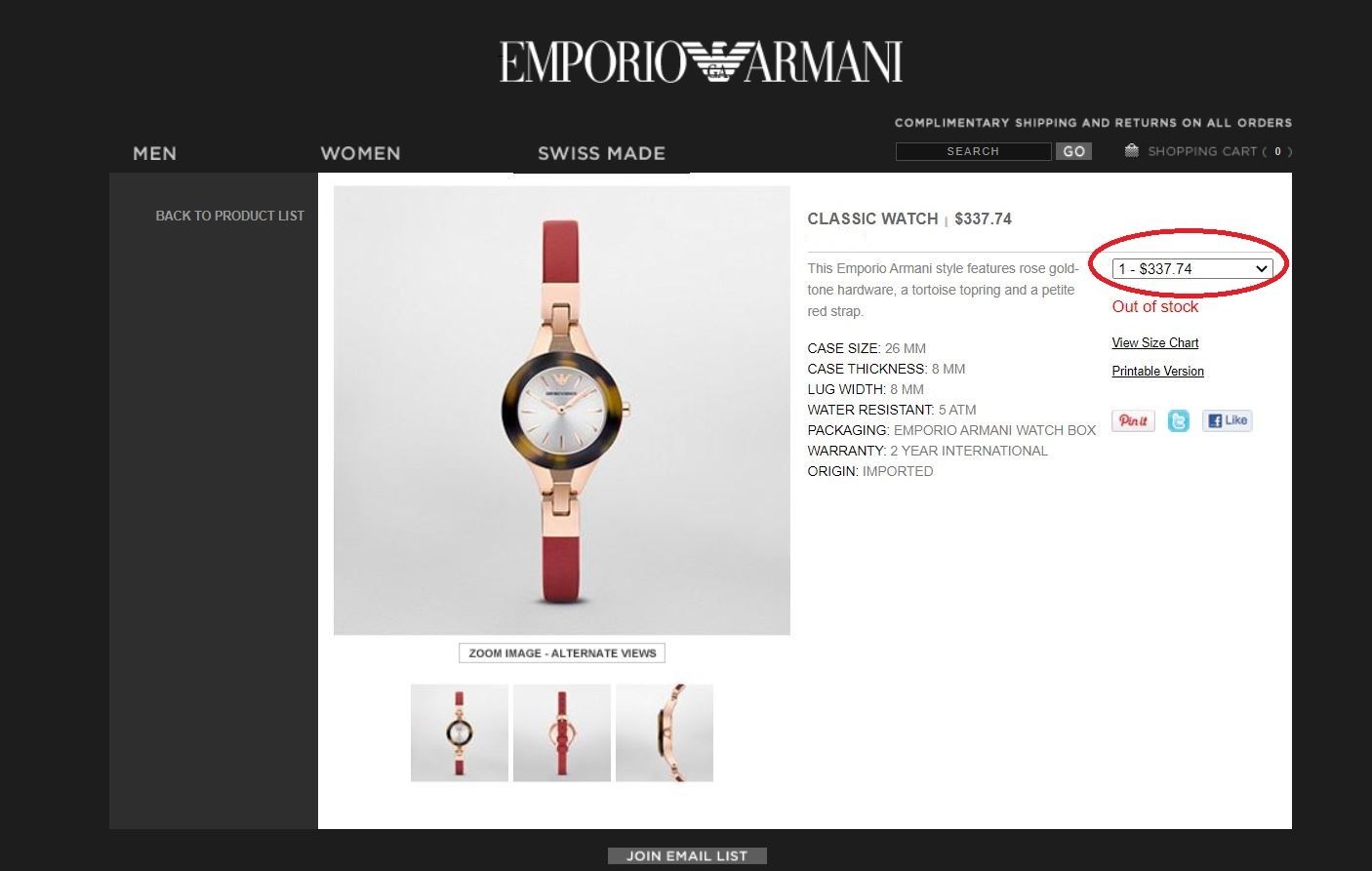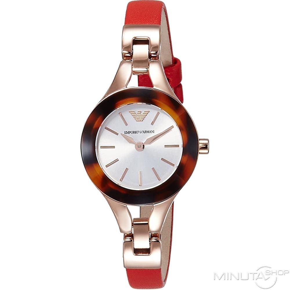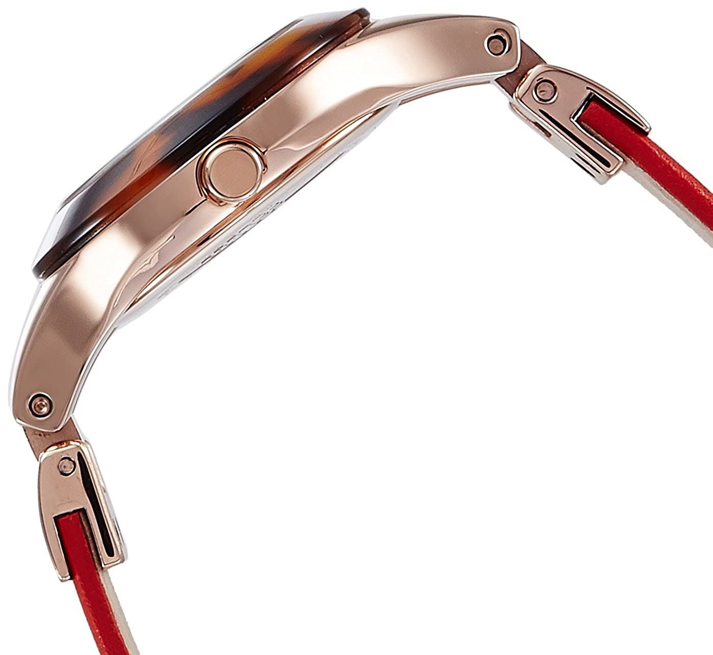 TORTOISE BEZEL & RED LEATHER STRAP. JEWELRY.