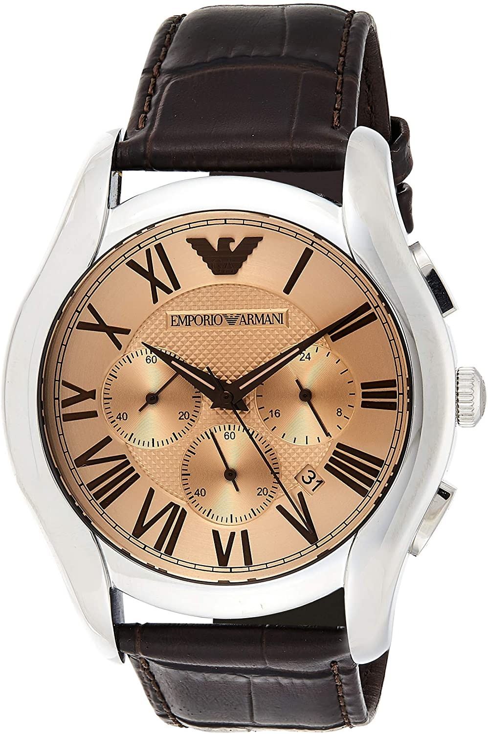 AMBER CRYSTAL DIAL CLASSIC WATCH WITH BROWN LEATHER STRAP. JEWELLERY