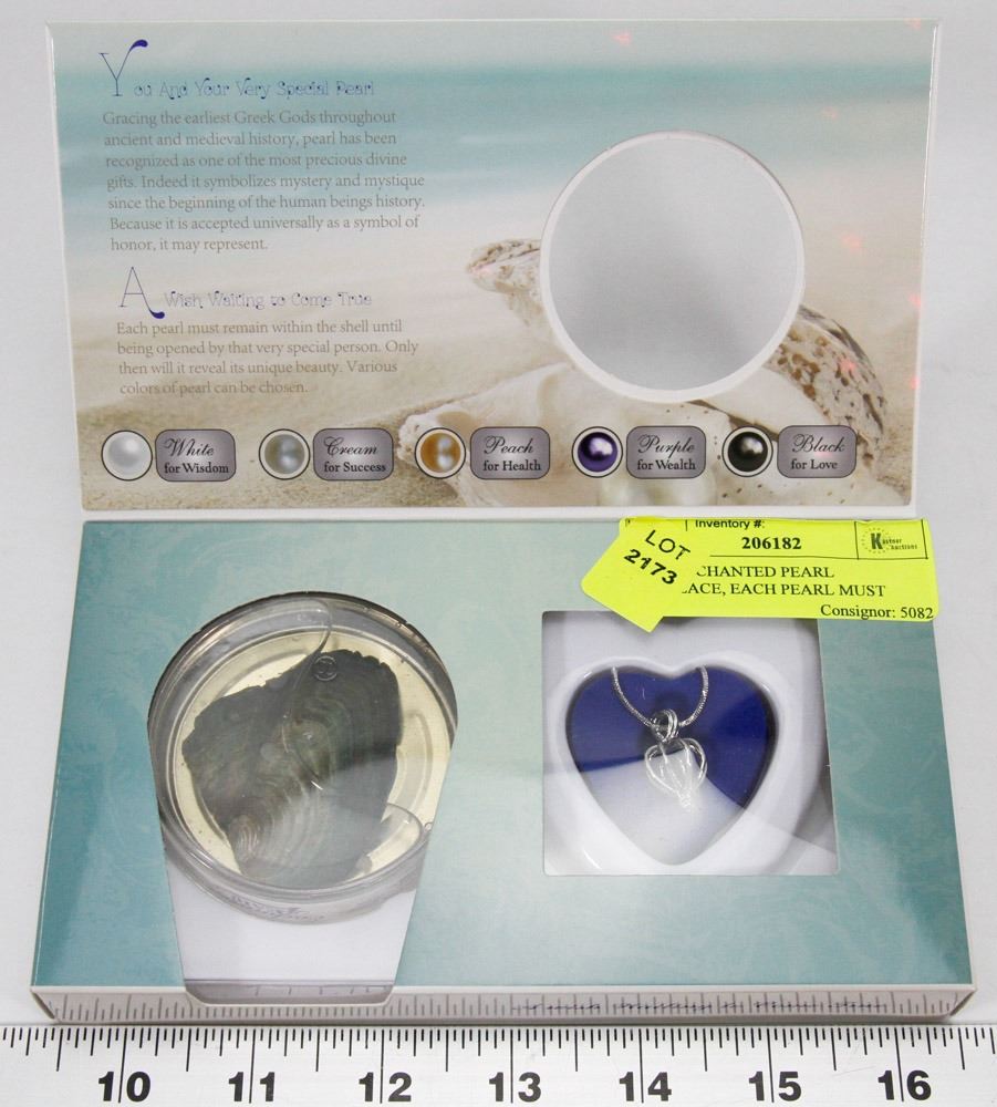 REMAIN WITHIN THE SHELL UNTIL BEING OPENED BY THAT VERY SPECIAL PERSON. THEN YOU WOULD REVEAL WHITE, CREAM, PEACH, PURPLE OR BLACK PEARL TO PUT INTO YOUR NECKLACE (PROVIDED) .