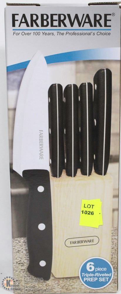 NEW FARBERWARE 6 PC KNIFE SET WITH BLOCK