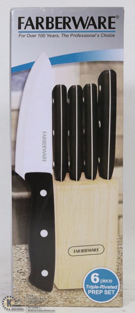 NEW FARBERWARE 6P KNIFE SET IN WOOD BLOCK
