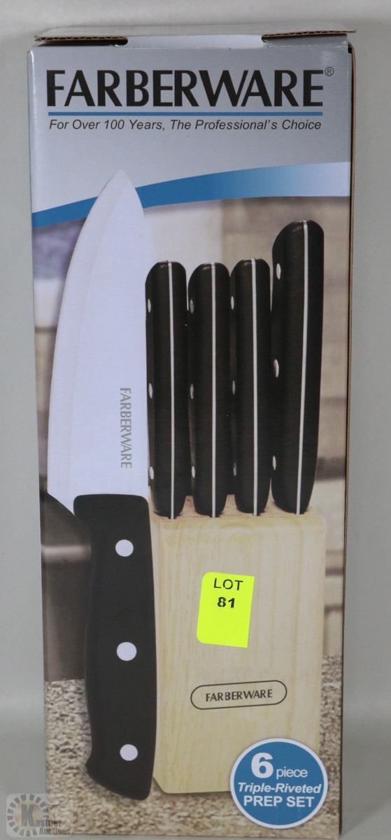 NEW FARBERWARE 6PC KNIFE SET WITH BLOCK