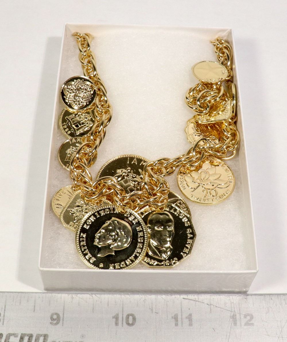NEW FOREVER 21 BRAND FASHION GOLD TONE CROSS AND ROMAN COIN STYLE NECKLACE/CHAIN