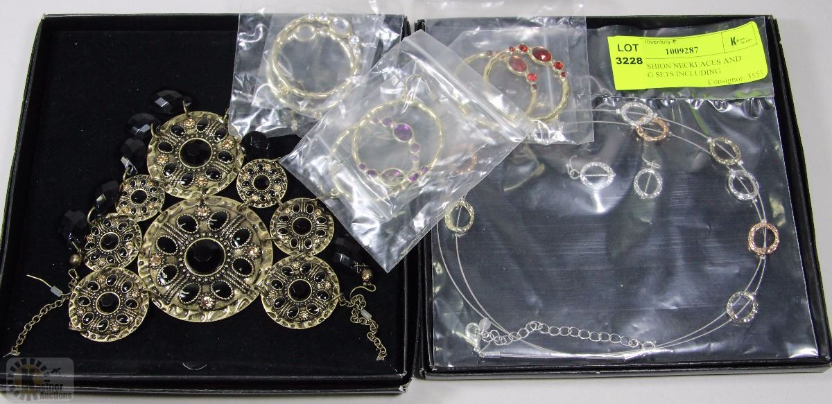 BRONZE WITH BLACK AND YELLOW STONES. AND 3 NEW FASHION HOOP EARRINGS