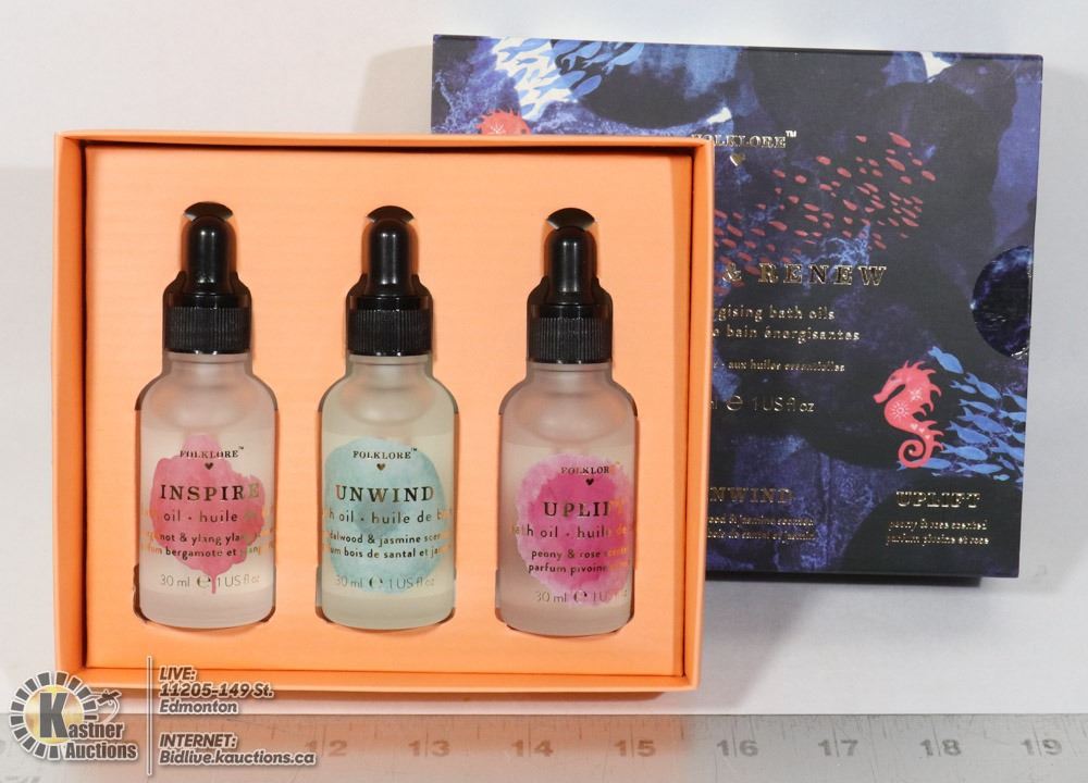 ESSENTIAL OIL INFUSED. 3 X 30ML. SCENTS: INSPIRE ( BERGAMOT, YLANG YLANG), UNWIND (SANDALWOOD, JASMINE), UPLIFT (PEONY, ROSE)