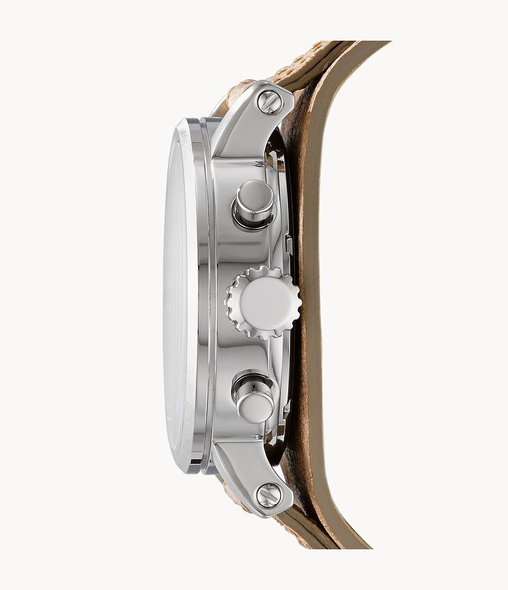 NEW FOSSIL TRIPLE CHRONO 38MM WHITE DIAL MSRP $245 LIGHT TAN BROWN LEATHER BAND WATCH. JEWELLERY