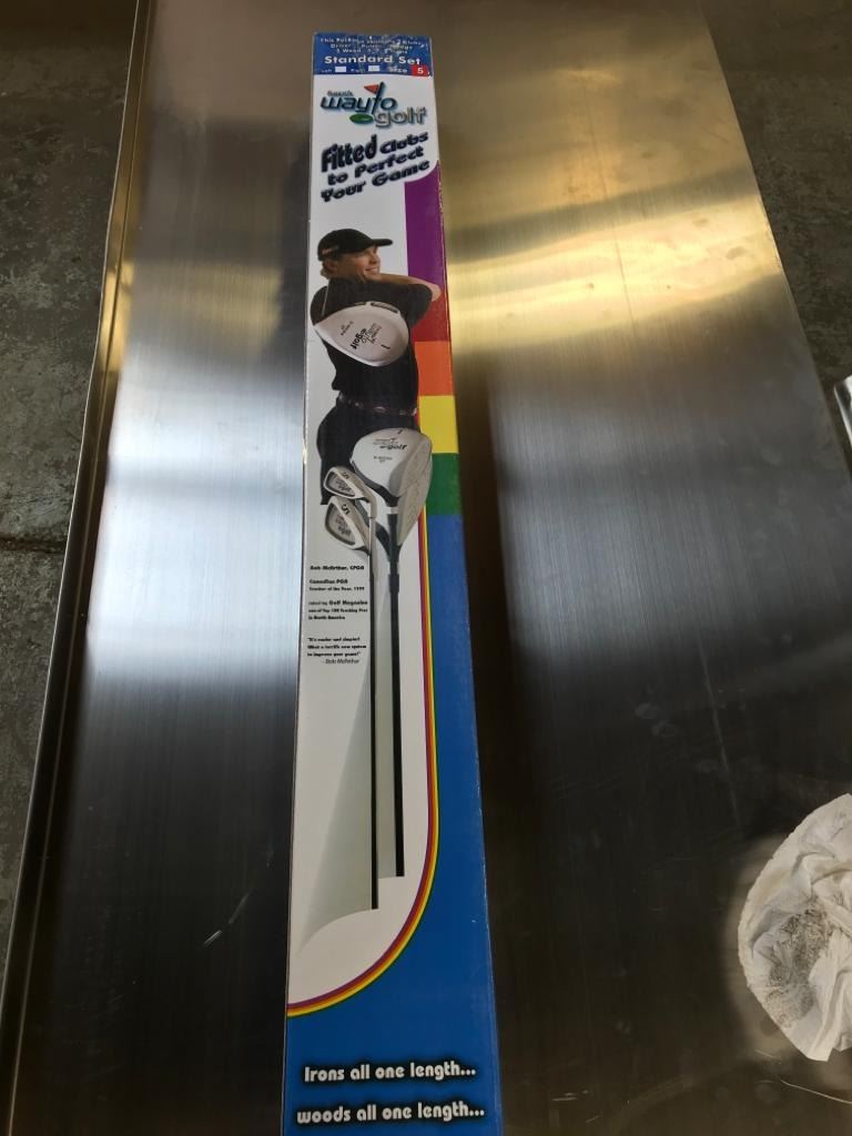 CLUB SET, INCLUDES DRIVER, PUTTER, WEDGE, 5 WOOD, #5 IRON, #7 IRON, #9 IRON. SPORTS, OUTDOORS.