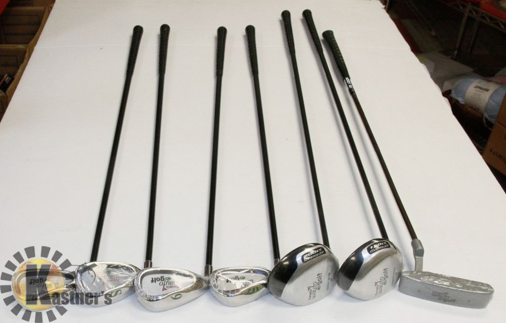 HANDED GOLF CLUB SET, INCLUDES FAIRWAY DRIVER NO 3, FAIRWAY WOOD NO 7, PUTTER, WEDGE, #5 IRON, #7 IRON, #9 IRON. SPORTS, OUTDOORS.