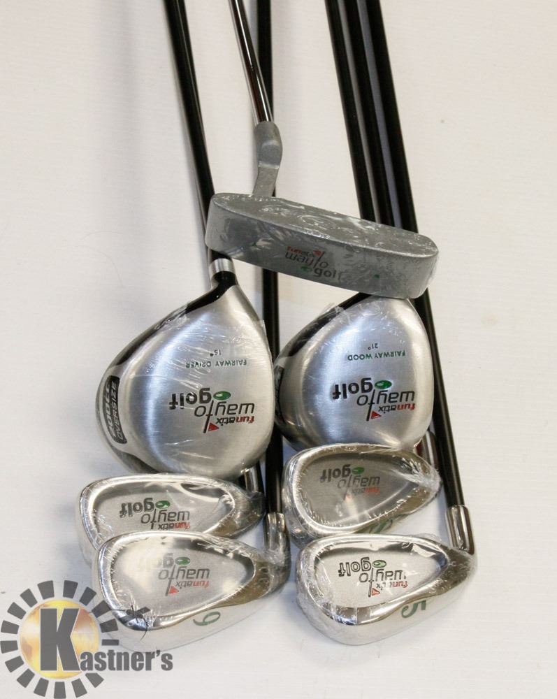 HANDED GOLF CLUB SET, INCLUDES FAIRWAY DRIVER NO 3, FAIRWAY WOOD NO 7, PUTTER, WEDGE, #5 IRON, #7 IRON, #9 IRON. SPORTS, OUTDOORS.