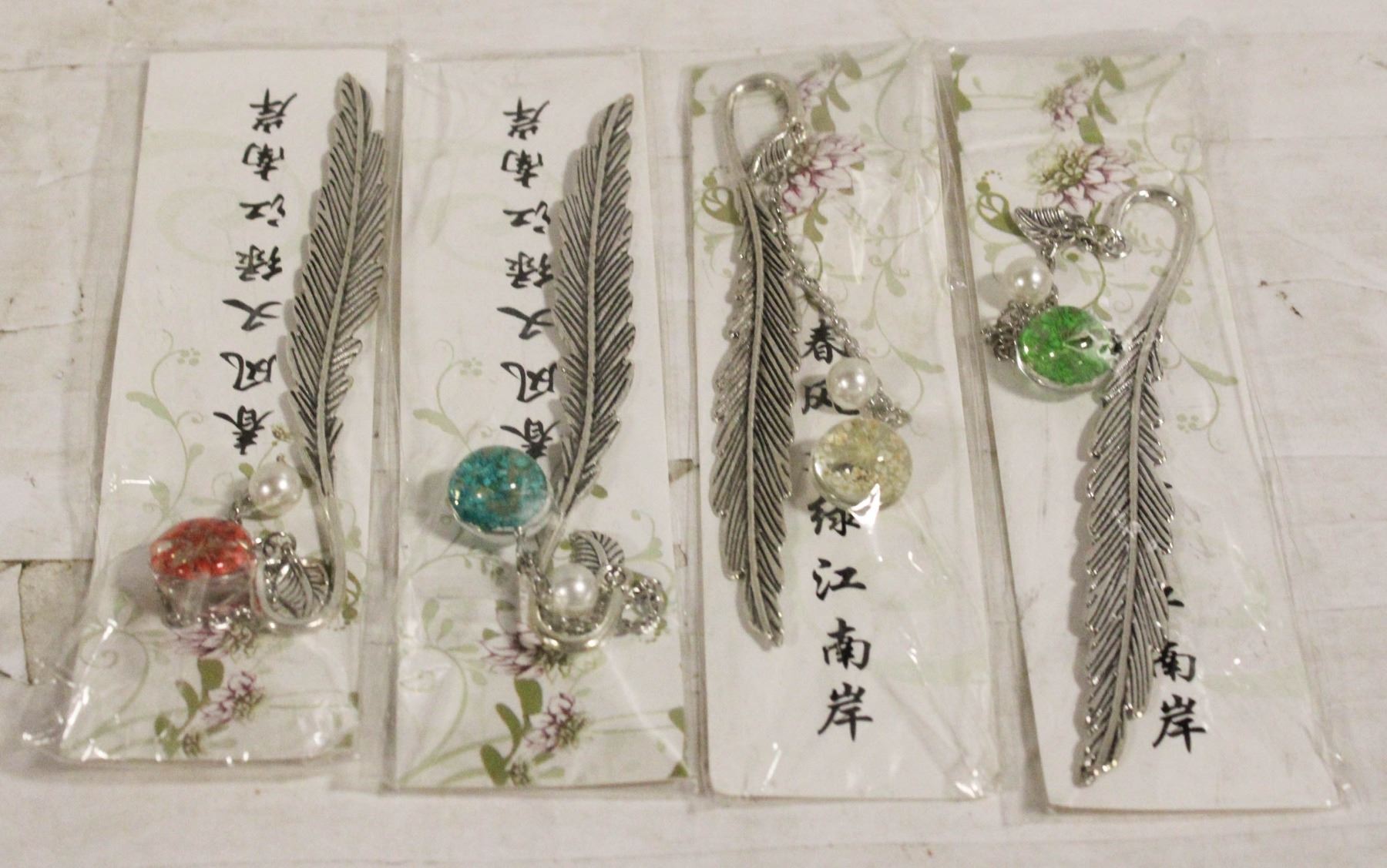 NEW GEM STONE BOOK MARKS - FEATHER - SET OF 4