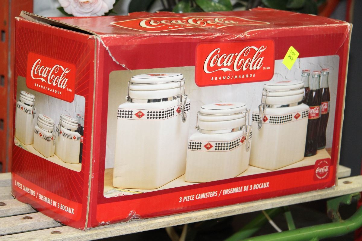 NEW GIBSON COCA COLA CANISTER SET WITH BOX
