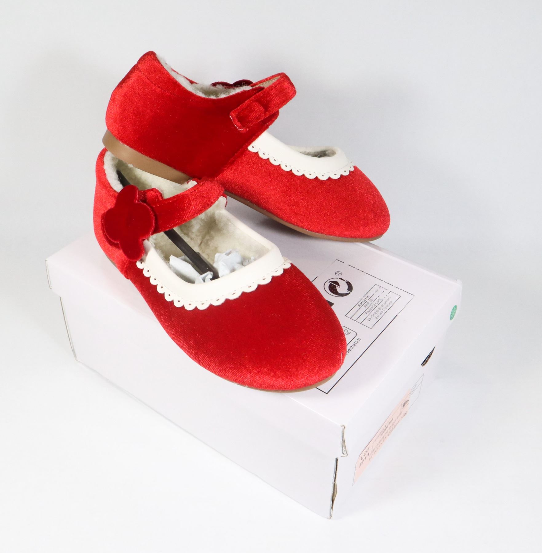 JANE FLATS. FLOWER VELCRO BUCKLE. SCALLOP TRIM, LINED. SIZE EQUIVALENT 11.5 U.S. STILL IN WRAPPING***ITEM(S) LOCATED IN LETHBRIDGE ALBERTA. TRANSPORT TO EDMONTON SERVICE WILL BE REDUCED (EXPECT LONGER WAIT TIMES) CANADA POST SHIPPING IS AVAILABLE. WE CAN HOLD JEWELRY, CURRENCY, COMIC BOOK, VIDEO GAME PURCHASES UNTIL A TRANSPORT VEHICLE IS AVAILABLE ( EXPECT A MINIMUM 3 WEEK WAIT FOR THE FREE TRANSPORT). WE ARE UNABLE TO HOLD LARGER ITEMS.