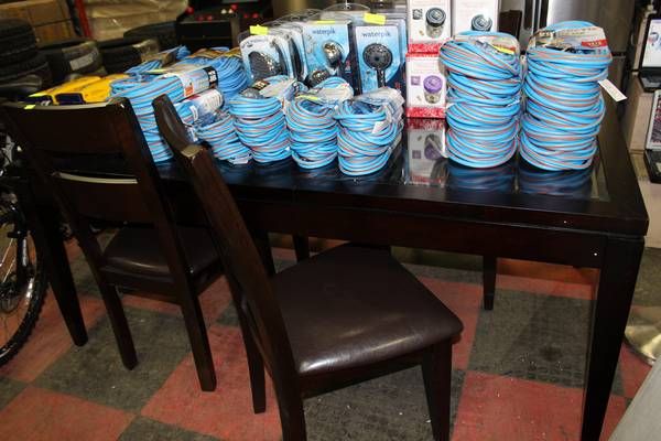 NEW GLASS AND WOOD TABLE W 4 SIDECHAIRS
