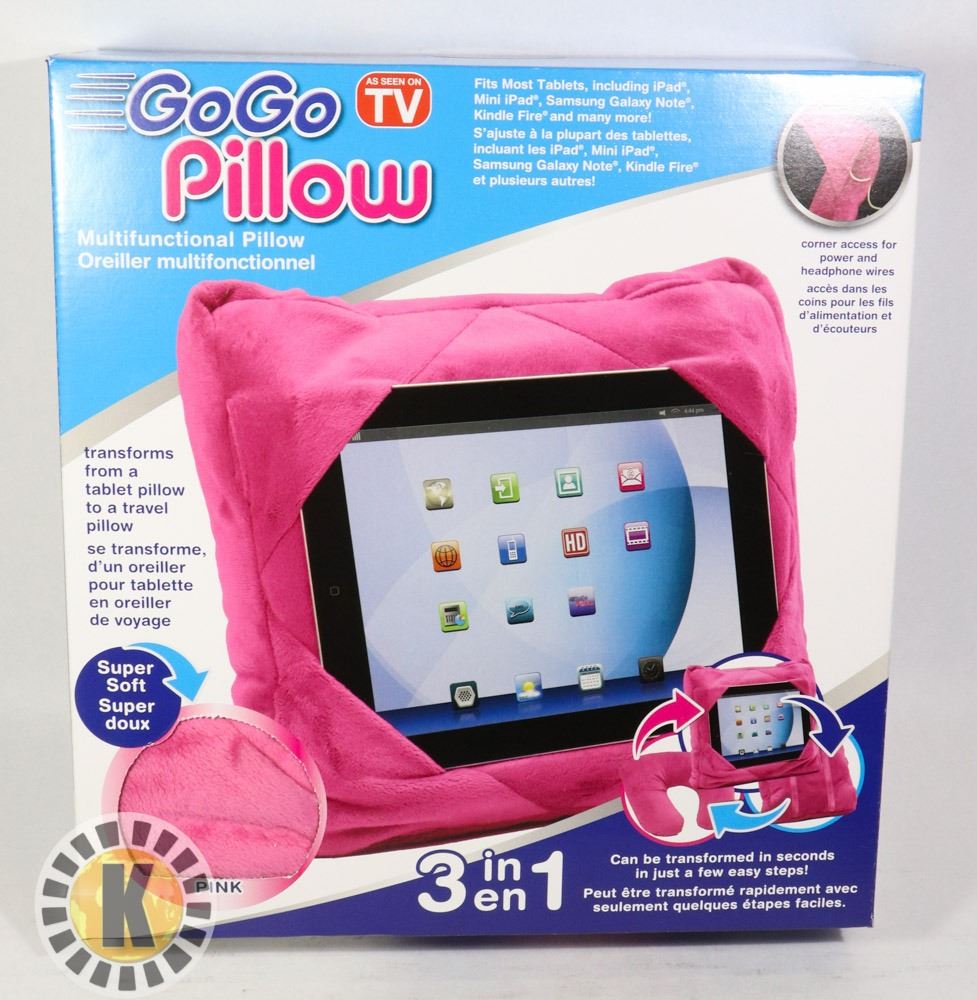TRANSFORMS FROM A TABLET PILLOW TO A TRAVEL PILLOW TO A NECK PILLOW. FITS MOST TABLETS, INCLUDING IPAD, MINI IPAD, SAMSUNG GALAXY NOTE, KINDLE FIRE AND MORE