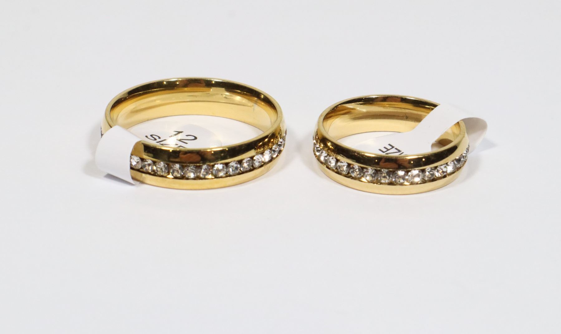STAINLESS STEEL RING SET. RHINESTONE ACCENTS AROUND THE WHOLE BAND. HAVE COMFORT FIT FEEL BAND