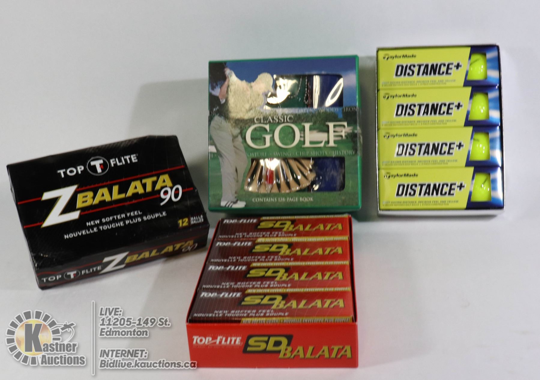 GOLF BALLS W/TOP ELITE SD BALATA 12 BALLS & TOP ELITE 90 12 BALLS W/CLASSIC GOLF KIT COMPLETE GOLF GUIDE FOR BEGINNERS. SEASONAL