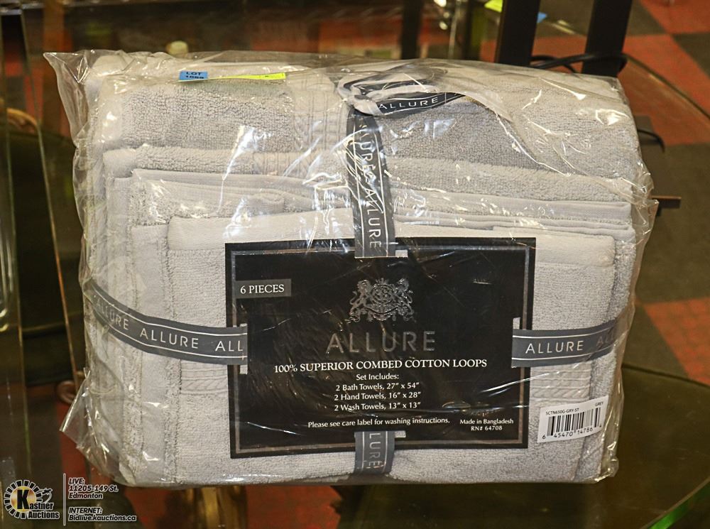 NEW GREY ALLURE 6 PIECE TOWEL SET, 100% COMBED