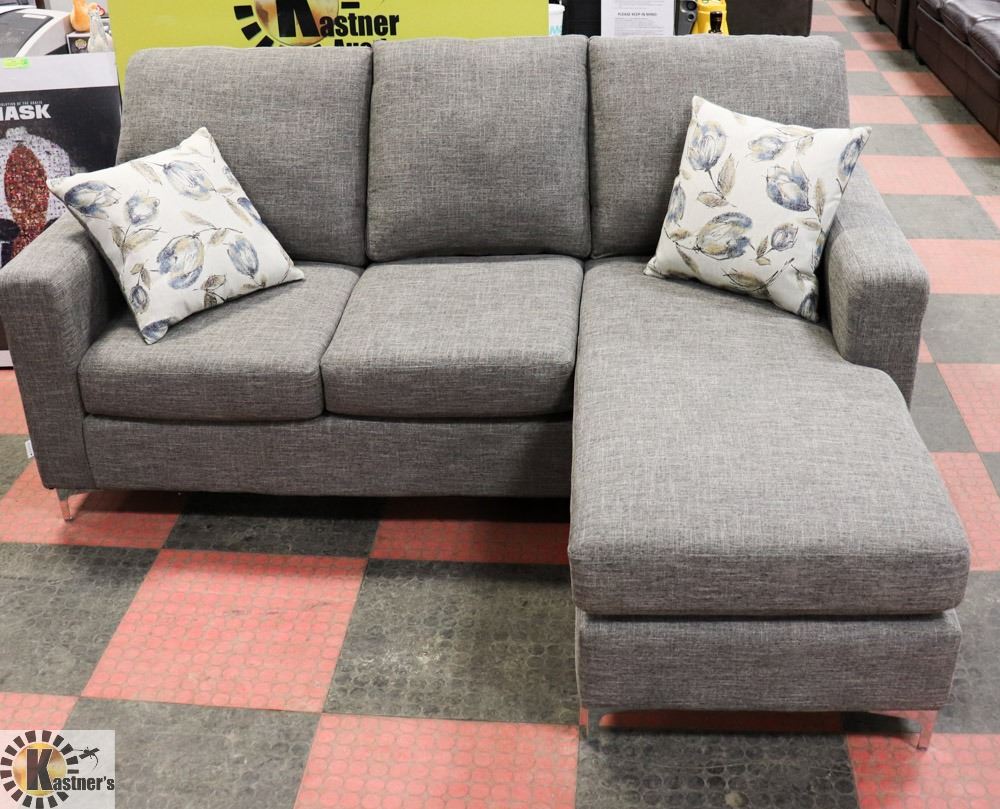 NEW GREY FABRIC 78  REVERSIBLE CHAISE LOUNGE SOFA.