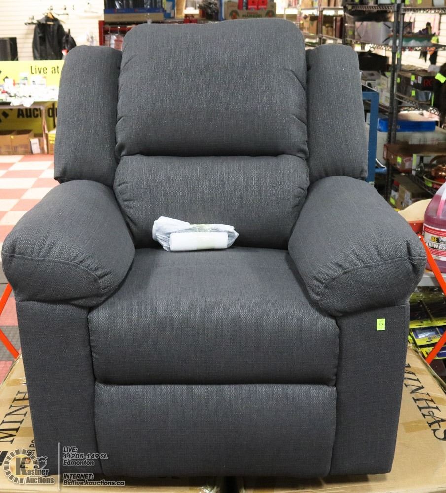 NEW GREY FABRIC POWER RECLINING 35" SOFA CHAIR