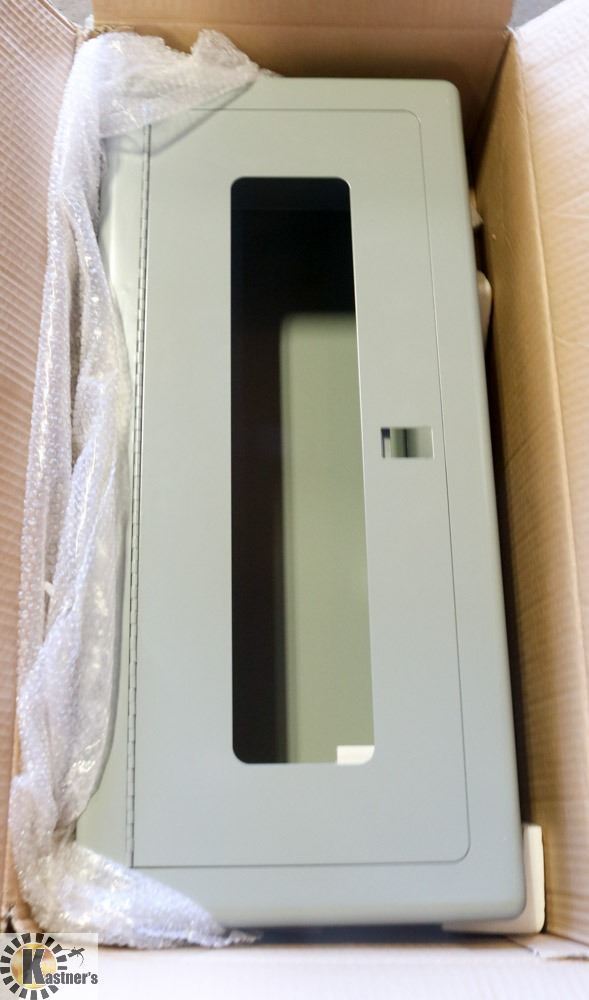 NEW GREY FIRE EXTINGUISHER CABINET, 12.5"X6"X28".